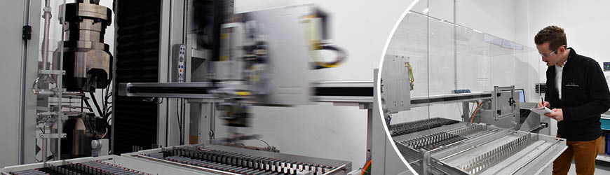 Mit unserem jüngsten Projekt, einer automatischen Biegeprüfung bei Temperaturen bis 150°C, bauen wir unseren Vorsprung noch weiter aus. Die Anlage wird mit einer ausgefeilten Heiz- und Kühltechnik ausgestattet, sodass in weniger als 45 min zwischen Raum- und Maximaltemperatur gewechselt werden kann.